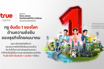 บริษัท ทรู คอร์ปอเรชั่น จำกัด (มหาชน) เป็นผู้นำเทเลเคอม-เทคคอมปานีไทยที่มุ่งมั่นสร้างศักยภาพให้คนในสังคมและกลุ่มธุรกิจ ได้เข้าถึงนวัตกรรมโซลูชันการเชื่อมต่อที่ล้ำสมัย ร่วมพัฒนาสังคมอย่างยั่งยืน บริการเสียงและบริการดาต้าของทรู จะช่วยสร้างระบบนิเวศไลฟ์สไตล์ครบวงจร ทั้งความบันเทิงระดับโลก สิทธิพิเศษและการเชื่อมต่อแบบไร้รอยต่อ และด้วยนวัตกรรมจากเทคโนโลยี AI ทำให้ทรู มีส่วนช่วยสร้างโลกที่ดีขึ้น คนในสังคมมีสุขภาพที่ดีขึ้น และปลอดภัยมากขึ้น ทั้งนี้ การที่ ทรู คอร์ปอเรชั่น ติดอันดับดัชนีความยั่งยืน Dow Jones Sustainability Indices (DJSI) ด้วยคะแนนสูงสุดในกลุ่มโทรคมนาคมโลก ติดต่อกันเป็นเวลา 7 ปี สะท้อนถึงความมุ่งมั่นของเทคคอมปานีไทยในการขับเคลื่อนความยั่งยืนและมุ่งสู่ความเป็นเลิศ ดูข้อมูลเพิ่มเติม คลิก www.true.th/sustainability