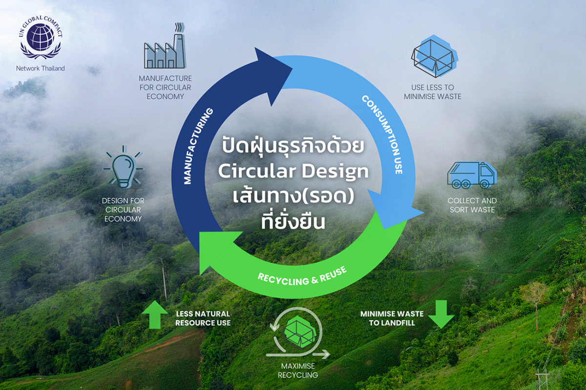 หนึ่งในการรวมพลังของภาคธุรกิจที่ใหญ่ที่สุดในโลก คือการร่วมเป็นสมาชิก UN Global Compact หรือ สมาคมเครือข่ายของผู้ประกอบการนักธุรกิจจากทั่วโลก สู่การบรรลุเป้าหมายเพื่อการพัฒนาที่ยั่งยืนของสหประชาชาติ (UN SDGs) จากการผลักดันเพื่อความยั่งยืนจากทั่วโลกได้นำไปสู่แนวทาง Bio-Circular-Green Economy (BCG Economy) และการนำหลักการ Circular Design มาใช้ รวมถึงการตอบรับกระแสโลกทางนโยบายของรัฐบาลไทยที่ให้ความสําคัญกับเรื่อง สิ่งแวดล้อม การลดก๊าซเรือนกระจก ในการส่งเสริมธุรกิจ SMEs ด้วยเศรษฐกิจ BCG คือ