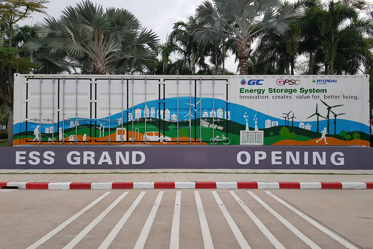 ต้นแบบเทคโนโลยีและนวัตกรรมด้านพลังงานของ กลุ่ม ปตท. ระบบกักเก็บพลังงานอัจฉริยะ (Smart Energy Storage System: ESS) ติดตั้งที่อาคารสำนักงานและศูนย์นวัตกรรมและเทคโนโลยี ของ GC ในจังหวัดระยอง