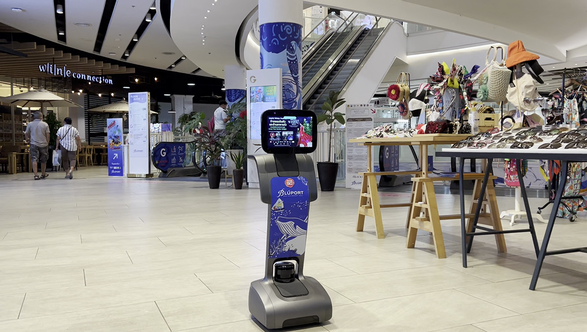 อีกหนึ่งพื้นที่ปฏิบัติการของเทมิช่วงที่โควิด–19 ยังแพร่ระบาด คือในห้างสรรพสินค้าที่ผู้คนต้องออกมาจับจ่ายซื้อของด้วยความจำเป็น ทีม True Robotics จึงติดตั้งชุดอุปกรณ์เสริมสำหรับวัดอุณหภูมิ ให้เทมิวิ่งตรวจการและวัดอุณหภูมิผู้คนรอบๆ หากใครมีอุณหภูมิร่างกายสูงจะได้รีบดำเนินการขั้นต่อไปได้อย่างทันท่วงที