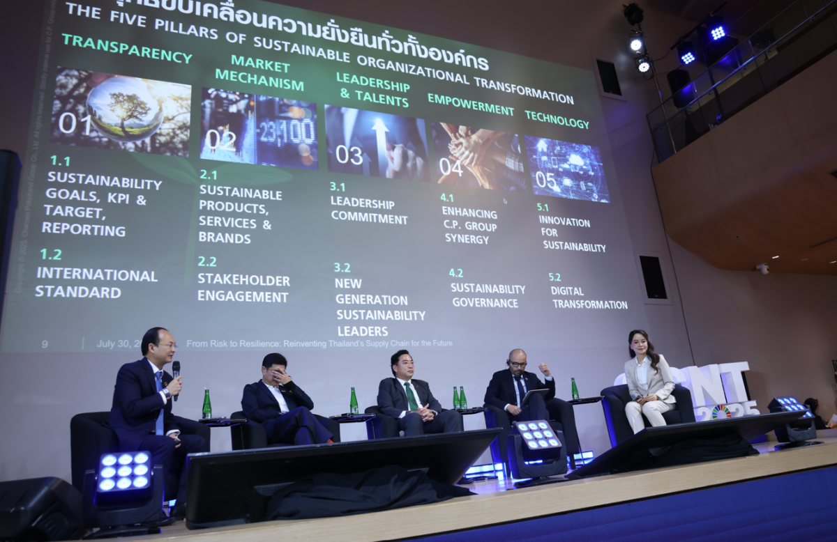 เครือเจริญโภคภัณฑ์” (C.P. Group) ในฐานะองค์กรชั้นนำระดับโลกที่ให้ความสำคัญกับการสร้างห่วงโซ่อุปทานที่แข็งแกร่งและยั่งยืน ได้ร่วมเสวนา หัวข้อ “From Risk to Resilience: Reinventing Thailand’s Supply Chain for the Future” ในนมหกรรมความยั่งยืนระดับชาติ “GCNT Expo 2025” เมื่อวันที่ 30 กรกฎาคม 2568