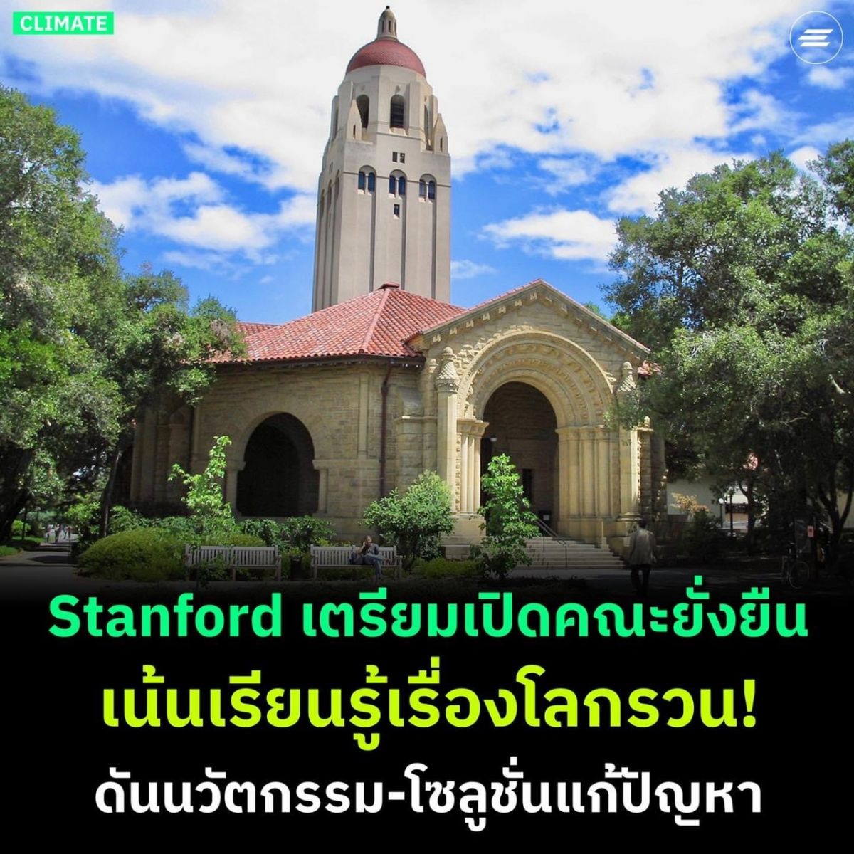 CLIMATE: มหาวิทยาลัย Stanford University สหรัฐอเมริกา ได้ประกาศการเตรียมเปิดตัวคณะใหม่ด้านความยั่งยืน โดยจะเน้นเรื่องการเรียนรู้เกี่ยวกับสภาพภูมิอากาศเปลี่ยนแปลง และการแก้ไขปัญหา