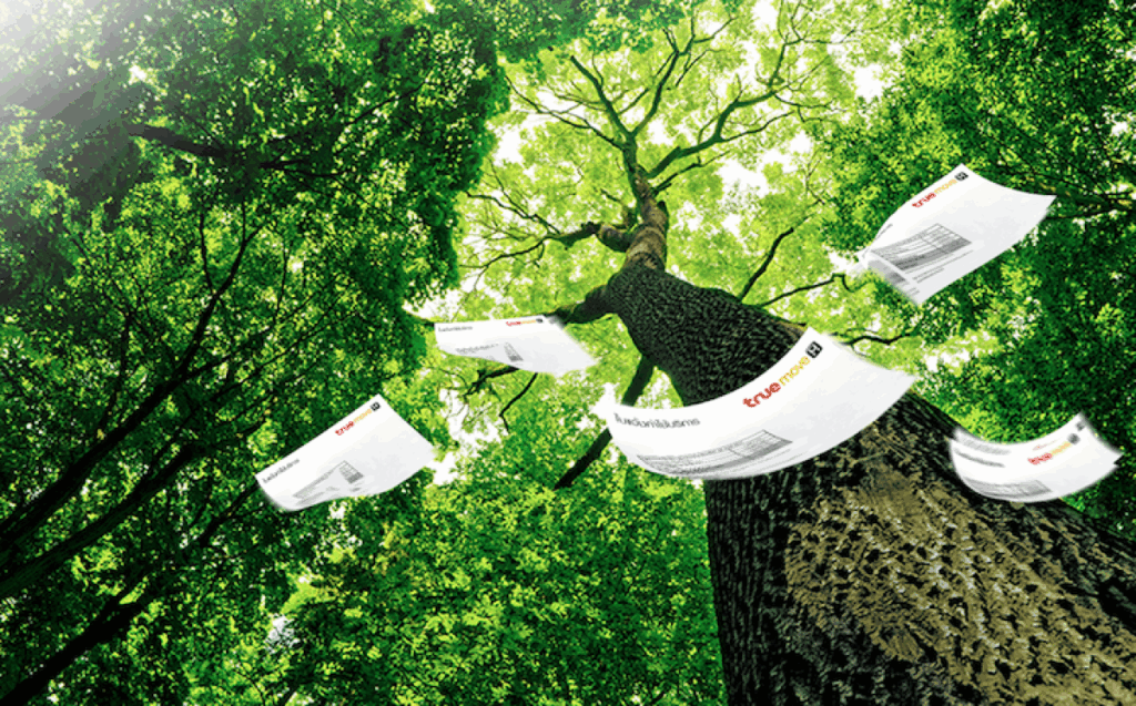 รวมทั้งนำนวัตกรรมมาสนับสนุนการลดการปล่อยก๊าซเรือนกระจกในแฟลตฟอร์มนวัตกรรมลดการปล่อยก๊าซเรือนกระจก ได้แก่ การนำระบบใบแจ้งค่าบริการและใบเสร็จรับเงินอิเล็กทรอนิกส์ (True E-Billing และ True E-Tax Invoice) แทนการใช้กระดาษ สามารถลดการใช้กระดาษได้มากกว่า 213 ล้านแผ่น หลีกเลี่ยงการปล่อยก๊าซเรือนกระจกได้ 2,242 ตันคาร์บอนไดออกไซด์เทียบเท่า