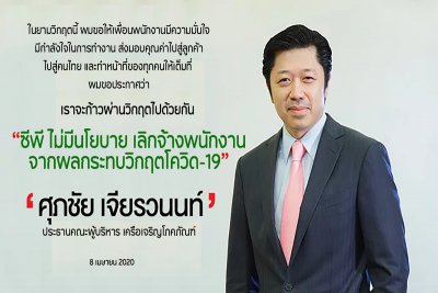 เครือซีพีประกาศนโยบายดูแลพนักงานภายใต้สถานการณ์การระบาดของไวรัสโควิด-19 ไม่มีนโยบายเลิกจ้างพนักงานและให้การดูแลพนักงานและครอบครัวที่เดือดร้อน