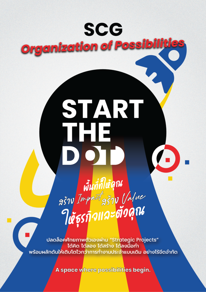 ในช่วงที่เกิดกระแส Digital Disruption เมื่อหลายปีที่ผ่านมาจากการเติบโตก้าวกระโดดของเทคโนโลยีส่งผลให้ระบบการทำงานเปลี่ยนแปลงไป รวมถึงธุรกิจ SCG ก็จำเป็นต้องปรับตัวเพื่อความอยู่รอด ทั้งการเปลี่ยนแปลงรูปแบบองค์กรและ ทรัพยากรบุคคล ที่เป็นสิ่งสำคัญไม่แพ้กัน ผ่านโครงการชื่อว่า ‘ZERO TO ONE’ และ ‘START THE DOT’ แพลตฟอร์มบ่มเพาะนวัตกรรมภายใน SCG ที่เปิดพื้นที่ให้พนักงานเปลี่ยน “ความคิด” ให้กลายเป็น “โอกาสทางธุรกิจ” ผ่านกระบวนการทดลอง เรียนรู้ และขยายผลอย่างเป็นระบบ