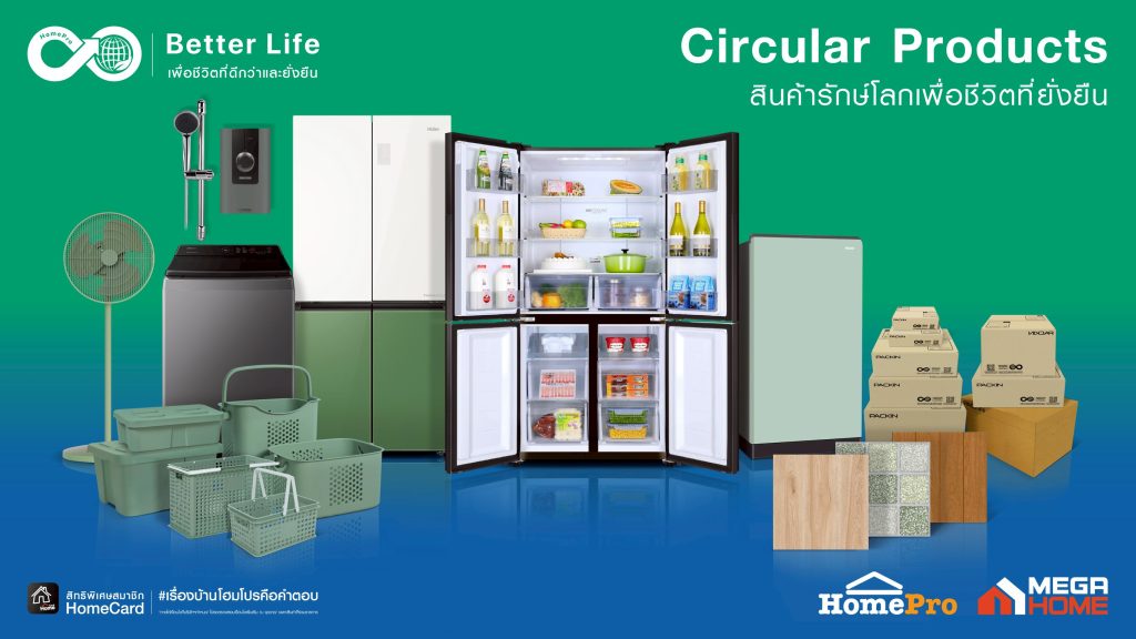 โฮมโปรต่อยอดวัสดุที่หลากหลายได้จากการคัดแยก ทั้ง พลาสติกประเภทต่างๆ เซรามิก เหล็ก และโลหะ โดยทำงานร่วมกับ พาร์ตเนอร์ที่มีความเชี่ยวชาญเพื่อผลิตกลับมาเป็นสินค้าใหม่ (Circular Products) ที่นำกลับมาวางจำหน่ายในโฮมโปรอีกครั้ง เช่น เครื่องใช้ไฟฟ้าทั้งขนาดใหญ่และขนาดเล็ก กระเบื้อง หรืออุปกรณ์ตกแต่งบ้านจากวัสดุหมุนเวียน