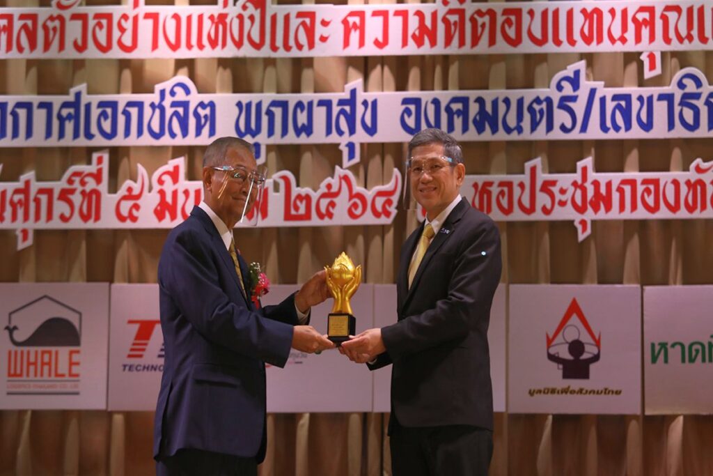 คุณชวลิต ทิพพาวนิช ประธานเจ้าหน้าที่บริหารและกรรมการผู้จัดการใหญ่ บริษัท ไออาร์พีซี จำกัด (มหาชน) หรือ IRPC รับรางวัล “ความดีตอบแทนคุณแผ่นดิน” ประจำปี 2564 ประเภทองค์กร สาขานวัตกรรมเพื่อสังคม ช่วยให้ผู้พิการมีคุณภาพชีวิตที่ดีขึ้น จากพลอากาศเอกชลิต พุกผาสุข องคมนตรี ในโครงการหนึ่งล้าน กล้าความดีตอบแทนคุณแผ่นดิน โดยมูลนิธิเพื่อสังคมไทย ณ หอประชุมกองทัพอากาศ
