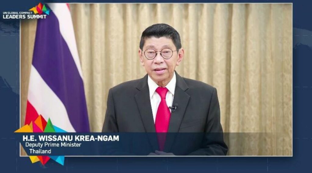 ในการประชุม UNGC Leaders Summit 2021 นอกจากภาคเอกชนชั้นนำของไทยจะได้ร่วมแสดงวิสัยทัศน์ในงานแล้ว ประเทศไทยยังมี ท่านรองนายกรัฐมนตรี วิษณุ เครืองาม เป็นผู้แทนรัฐบาลไทยร่วมกล่าวปาฐกถาในการเปิดประชุมความยั่งยืนระดับโลก ภายใต้หัวข้อ “Commemoration of the tenth Anniversary of the UN Guiding Principles on Business and Human Rights” ในโอกาสสำคัญของการเฉลิมฉลองวาระครบรอบ 10 ปี ของการยอมรับหลักการของสหประชาชาติว่าด้วยธุรกิจและสิทธิมนุษยชน (UNGPs)