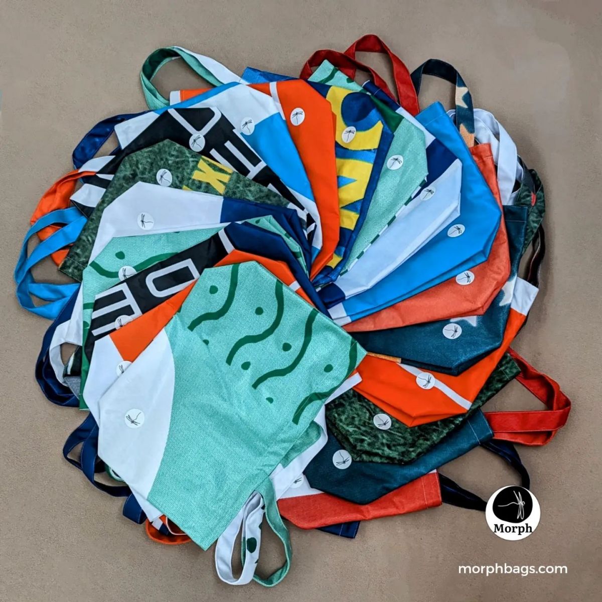 เช่น กระเป๋าสะพายทำจากไนลอนเหลือทิ้งจากผู้ผลิตป้ายแบนเนอร์ และกล่องแว่นตายางทำจากวัสดุที่เหลือจากการผลิตชุดดำน้ำ ผลิตภัณฑ์ของ Morph แต่ละอันจึงมีลวดลายเป็นเอกลักษณ์เฉพาะตัว เนื่องจากวัสดุนั้นมาจากหลากหลายแหล่งนั้นเอง