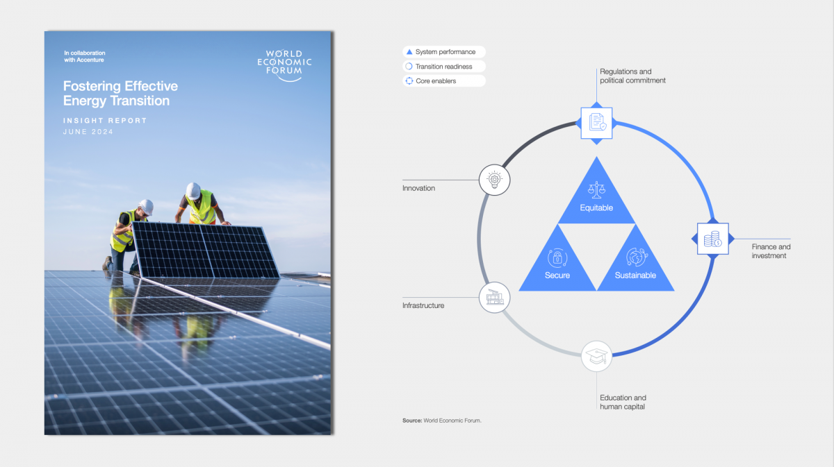 รายงาน Fostering Effective Energy Transition 2024 โดย World Economic Forum ได้จัดทำดัชนีการเปลี่ยนผ่านพลังงาน (Energy Transition Index: ETI) มากว่า 14 ปี ซึ่งเป็นดัชนีวัดประสิทธิภาพของระบบพลังงานใน 120 ประเทศ พิจารณาจาก
