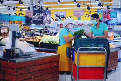 ที่โลตัส สาขารังสิตคลอง 4 เมื่อมองไปรอบๆ ก็เห็นชั้นวางวัตถุดิบเรียงรายไปด้วยผักผลไม้สดใหม่อย่างที่คุ้นเคย อย่างไรก็ตาม การดำเนินงานของโลตัสสาขานี้พิเศษกว่า ตรงที่ในแต่ละวัน พนักงานจะคัดแยกวัตถุดิบที่หมดอายุการขายออกเป็น 2 ประเภทใหญ่ๆ นั่นคือ พืชผักผลไม้ที่บริจาคให้คนและบริจาคให้สัตว์ เพื่อลดปริมาณวัตถุดิบขายไม่ได้ที่ต้องทิ้งไปยังพื้นที่ฝังกลบ