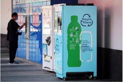 ตู้รับคืนบรรจุภัณฑ์เครื่องดื่มประเภทขวดพลาสติก PET และกระป๋องอะลูมิเนียมภายใต้โครงการ Recycle N Save เครดิตภาพ : https://www.straitstimes.com/singapore/environment/refund-based-recycling-of-bottles-and-cans-to-be-legislated-by-2022