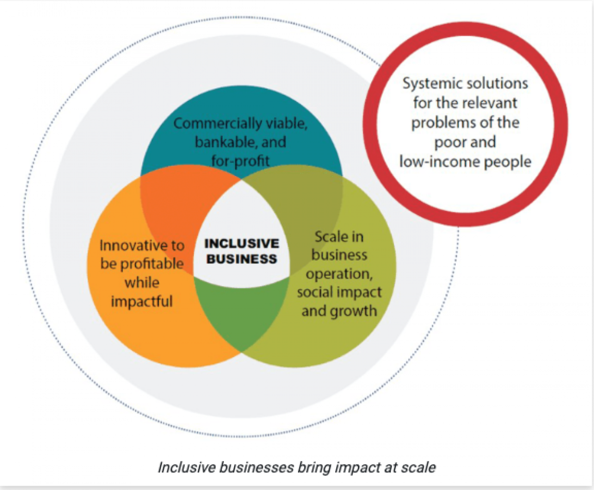 Inclusive Business หรือ IB หมายถึงธุรกิจที่สามารถสร้างกำไรได้อย่างยั่งยืน โดยมุ่งเป้าไปยังประชากรกลุ่มฐานรากของปิรามิดเศรษฐกิจ (Base of the Pyramid หรือ BoP) ซึ่งเป็นกลุ่มที่ใหญ่ที่สุดแต่มีรายได้ต่ำที่สุดให้เข้ามาเป็นส่วนหนึ่งของห่วงโซ่คุณค่าของธุรกิจ ในฐานะผู้จัดหา ผู้จัดจำหน่าย ผู้ค้าปลีก หรือผู้บริโภค