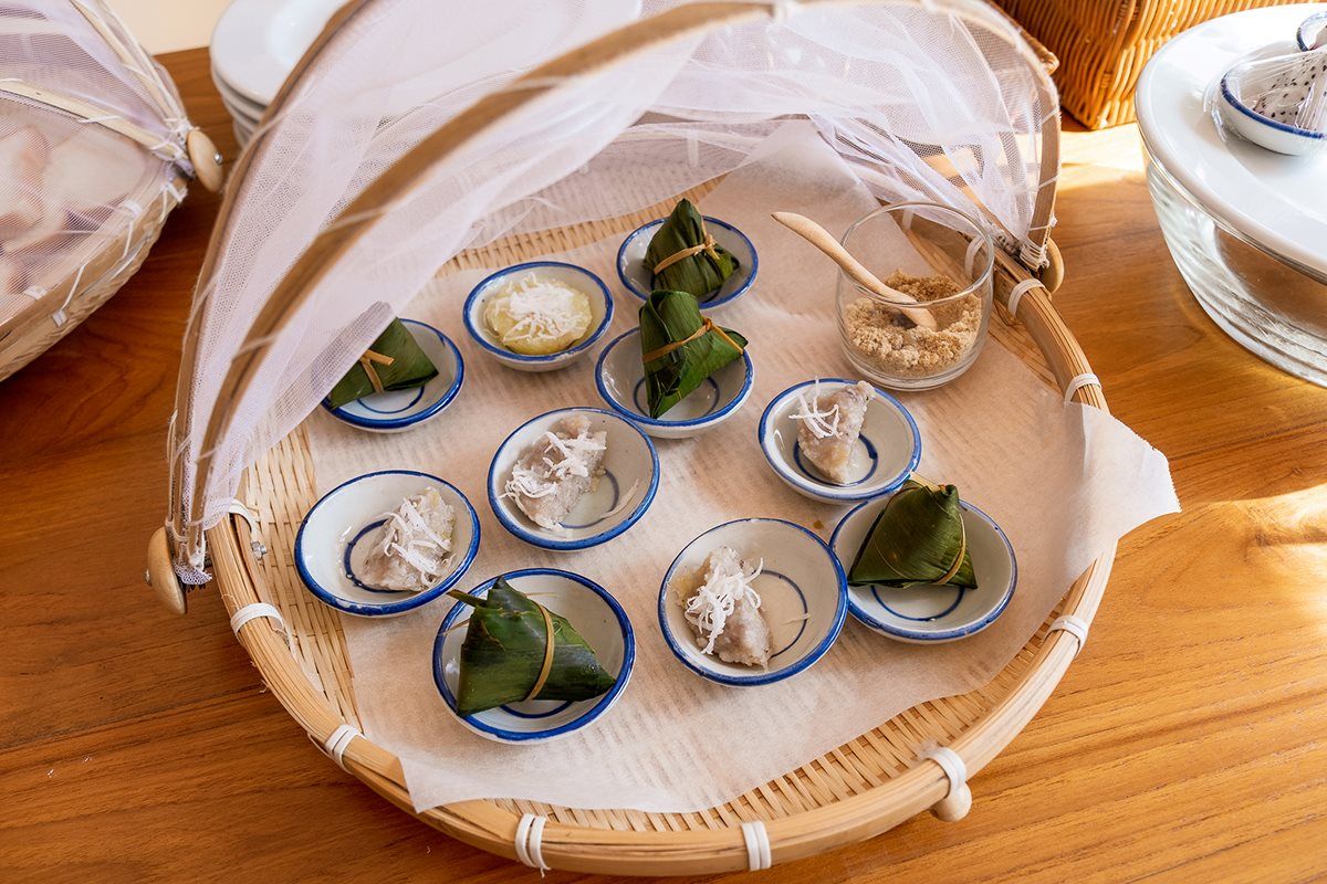 “เราอยากสนับสนุนให้อาหารชุมชนเติบโตอย่างยั่งยืนด้วย จึงสร้าง Mini Local Stations ขึ้นด้วย โดยจะอุดหนุนขนมท้องถิ่นจากชุมชนต่างๆ เช่น ปาท่องโก๋น้ำจิ้ม เมนูเอกลักษณ์เฉพาะของจันทบุรี และขนมจ้างทานกับน้ำตาลจากชุมชนหนองบัว ซึ่งเป็นสูตรที่นิยมกันมานานตั้งแต่สมัยรัชกาล 5 ทั้งยังเป็นขนมที่พระองค์ท่านโปรดปรานอย่างมาก นำมาจัดเสิร์ฟแบบสดใหม่ทุกวัน”