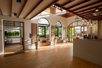 เพราะเน้นแนวคิด “อยู่สบาย” โรงแรมแห่งนี้จึงให้ความสำคัญกับการแทรกพื้นที่สีเขียวและช่องเปิดโล่ง เพื่อแขกจะได้สัมผัสอากาศ แดด ลม ฝน รวมถึงการเข้าถึงของแสงธรรมชาติการไหลเวียนของอากาศ