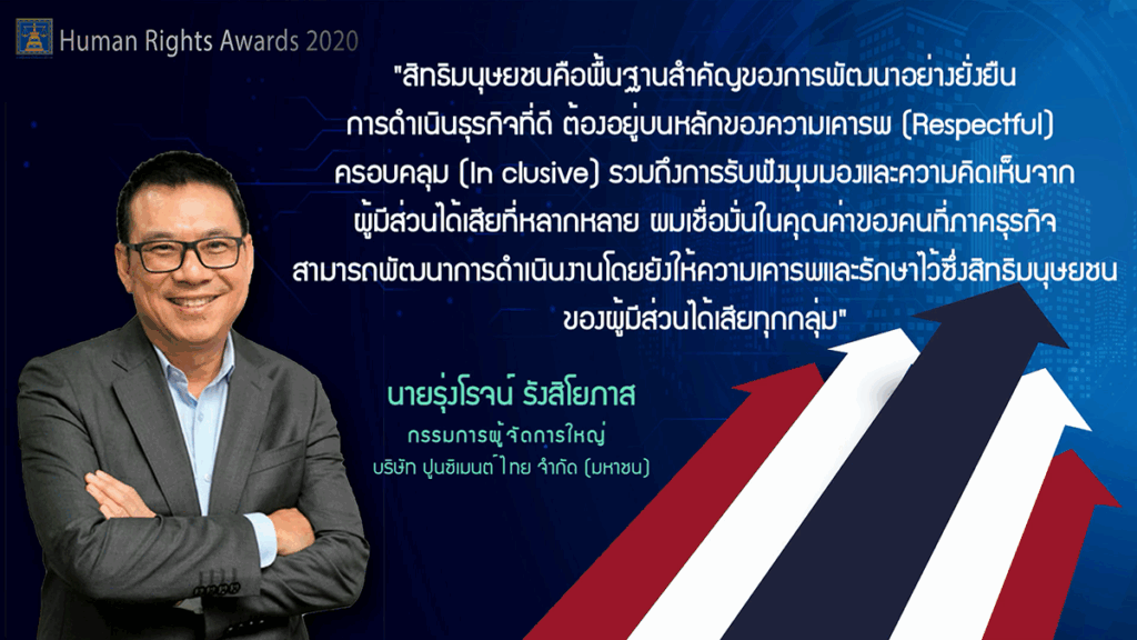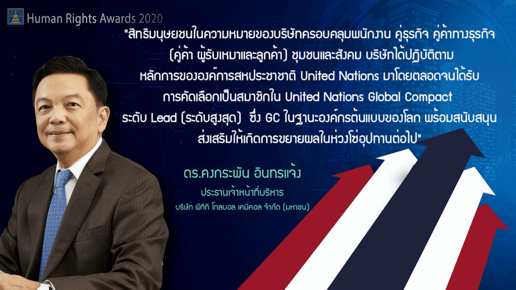 ทั้งนี้สมาชิกของ UNGC ที่ได้รับมอบรางวัลองค์กรต้นแบบด้านสิทธิมนุษยชน ประจำปี 2563 ได้แก่