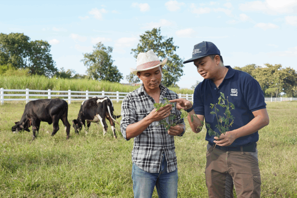 เนสท์เล่ให้ความสำคัญกับการจัดการอาหารและโภชนาการสำหรับโคนม โดยเพิ่มพื้นที่ปลูกหญ้าผสมถั่วหลายชนิด เพื่อให้แม่โคได้รับสารอาหารที่ครบถ้วนและหลากหลาย ทั้งยังมีการวิเคราะห์ดินเพื่อใช้ปุ๋ยอย่างเหมาะสม พร้อมจัดอบรมเกษตรกรและเจ้าหน้าที่สหกรณ์ให้สามารถคำนวณสูตรอาหารที่ตอบโจทย์ความต้องการของแม่โค ซึ่งจะช่วยลดต้นทุนให้กับเกษตรกร พร้อมเพิ่มความหลากหลายทางชีวภาพและฟื้นฟูทรัพยากรธรรมชาติไปพร้อมกัน