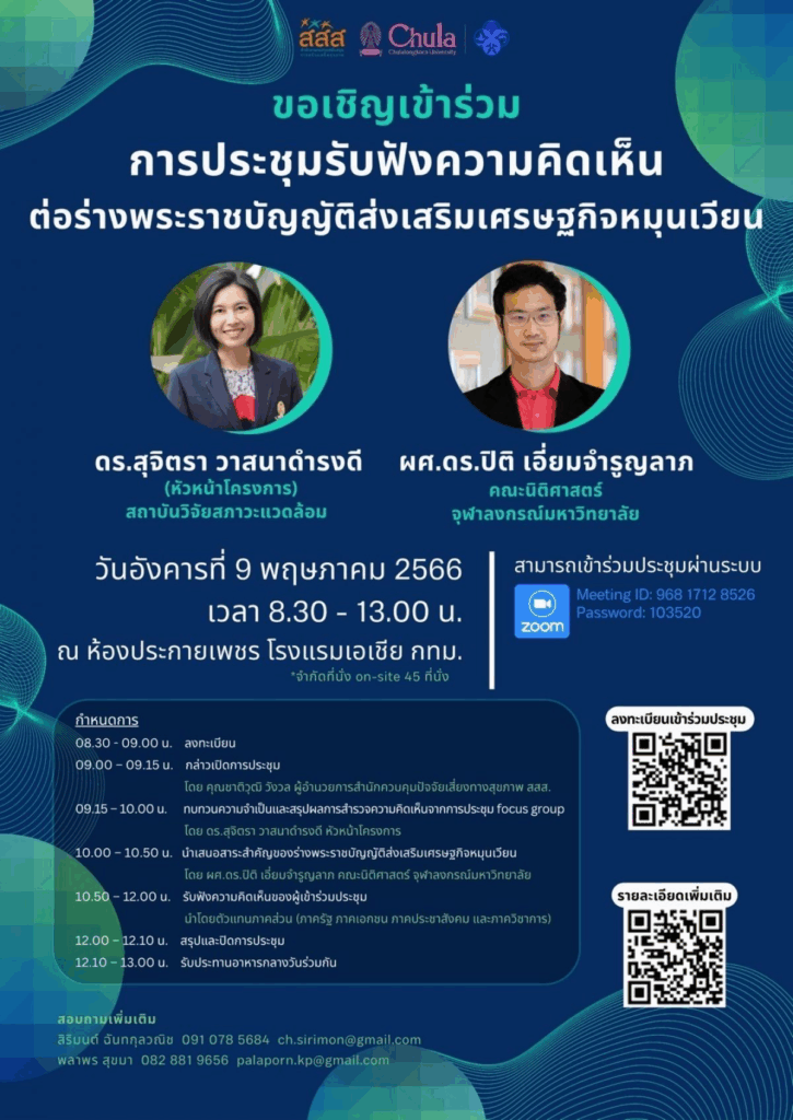 ขอเชิญท่านเข้าร่วม “การประชุมรับฟังความคิดเห็นต่อร่างพระราชบัญญัติส่งเสริมเศรษฐกิจหมุนเวียน”