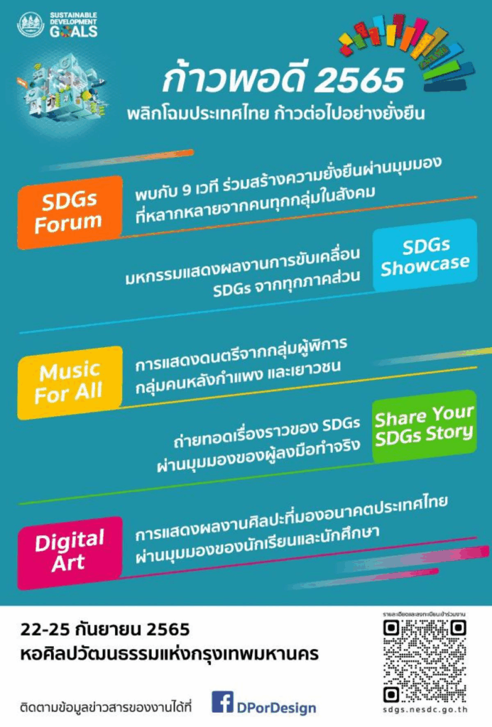 สภาพัฒน์ขอเชิญเข้าร่วมงาน “ก้าวพอดี 2565 พลิกโฉมประเทศไทย ก้าวต่อไปอย่างยั่งยืน” ระหว่างวันที่ 22 – 25 ก.ย. 2565 ณ หอศิลปวัฒนธรรมแห่งกรุงเทพมหานคร