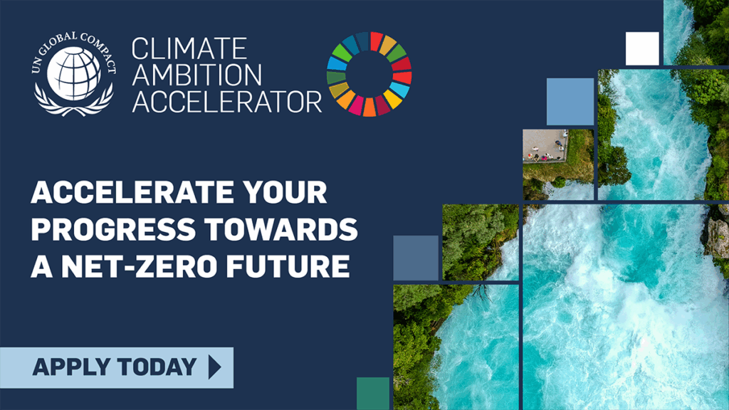 Climate Ambition Accelerator เป็นหลักสูตร 6 เดือน สำหรับองค์กรสมาชิกของ United Nations Global Compact ที่ต้องการสร้างความก้าวหน้าในการตั้งเป้าหมายการปล่อยก๊าซเรือนกระจกตามหลักวิทยาศาสตร์ และสร้างเส้นทางเพื่อให้บริษัทเปลี่ยนผ่านไปสู่การปลดปล่อยก๊าซเรือนกระจกสุทธิเป็นศูนย์ (Net-zero) หลักสูตรนี้จัดทำขึ้นโดย United Nations Global Compact โดยได้รับการสนับสนุนจาก Patrons Ørsted, Natura & Co และ En+ Group ซึ่งมีเป้าหมายที่จะขยายการดำเนินการด้านสภาพอากาศที่น่าเชื่อถือในบริษัททุกขนาด ภาคส่วน และภูมิภาค ให้สามารถดำเนินงานตามความมุ่งมั่นในการลดการปล่อยก๊าซเรือนกระจกได้ตามเป้าหมาย