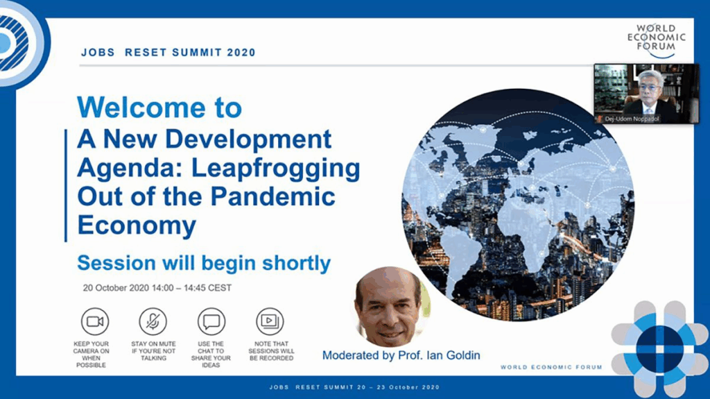เมื่อเร็วๆ นี้ นายนพปฎล เดชอุดม ประธานคณะผู้บริหารด้านความยั่งยืนองค์กร บริษัท เครือเจริญโภคภัณฑ์ จำกัด ได้ร่วมแลกเปลี่ยนมุมมองและประสบการณ์ของเครือฯ ในการรับมือปัญหาโรคระบาดโควิด-19 และวิสัยทัศน์การพัฒนาฟื้นฟูเศรษฐกิจโลก ในเวทีเสวนาออนไลน์ “A New Development Agenda: Leapfrogging Out of the Pandemic Economy” ซึ่งเป็นส่วนหนึ่งของการประชุมสุดยอด The Jobs Reset Summit 2020 จัดโดย World Economic Forum