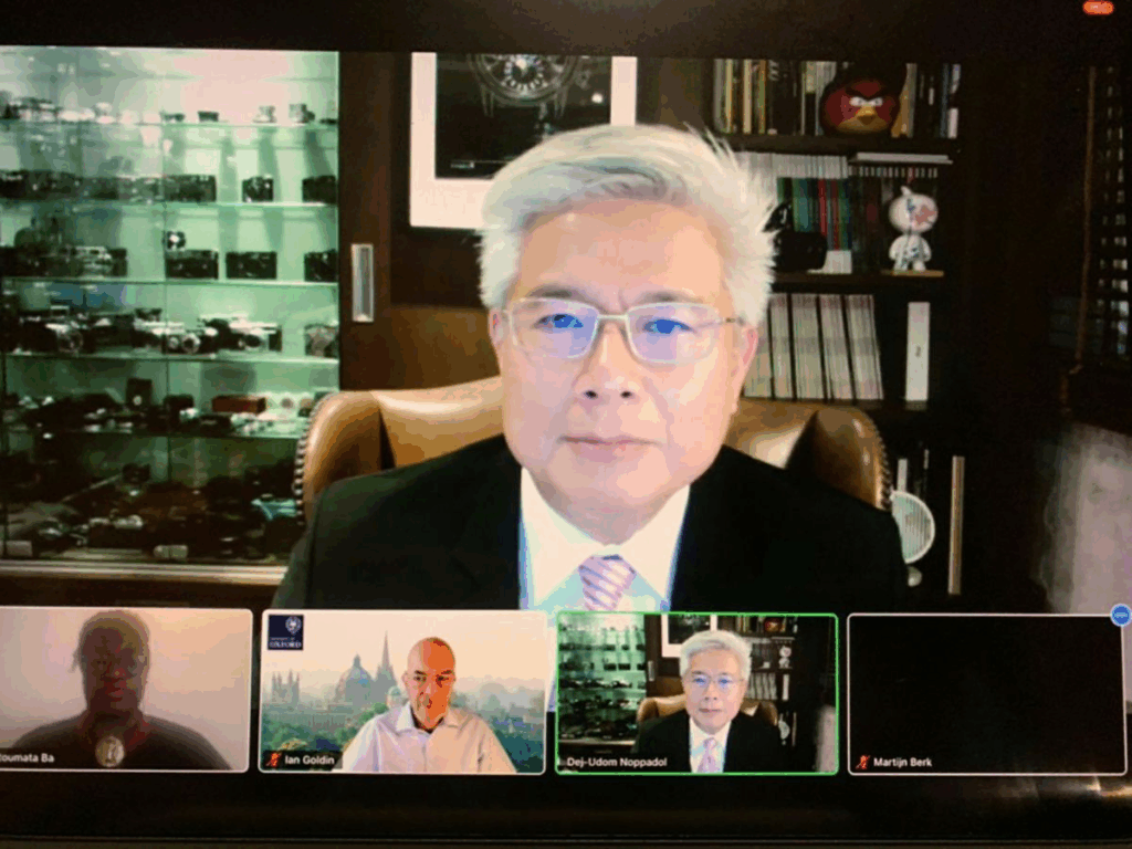 ประธานคณะผู้บริหารด้านความยั่งยืนองค์กร เครือเจริญโภคภัณฑ์ กล่าวสรุปโดยยกตัวอย่างสงครามโลก ที่ธุรกิจเอกชนทั้งระบบเศรษฐกิจระดมสรรพกำลังผลิตอาวุธยุทโธปกรณ์เพื่อเตรียมพร้อมต่อสู้สงคราม เปรียบเทียบกับวิกฤตโรคระบาดโควิด 19 ในปัจจุบัน ที่ทั้งโลกต้องรวมกำลังกันระดมทรัพยากรและเทคโนโลยี เพื่อต่อสู้กับเชื้อไวรัส รวมถึงร่วมมือกันแก้ไขปัญหาสังคมและสิ่งแวดล้อม เช่น ปัญหาการเปลี่ยนแปลงสภาพภูมิอากาศ การสูญเสียความหลากหลายทางชีวภาพ ปัญหาความขัดแย้งทั้งในระดับสังคมและระหว่างประเทศ ซึ่งนับเป็นภัยคุกคามความเป็นอยู่ที่ดีของมนุษยชาติไม่ยิ่งหย่อนกว่าภัยสงคราม ซึ่งศาสตราจารย์เอียน โกลดิน ผู้ดำเนินรายการ กล่าวแสดงความเห็นด้วยและตั้งความหวังว่าโลกจะเรียนรู้บทเรียนจากวิกฤตโควิดครั้งนี้ เหมือนกับที่เรียนรู้ผลร้ายของสงครามจากสงครามโลกครั้งที่สอง จนนำไปสู่ความพยายามสร้างกรอบความร่วมมือระหว่างประเทศเพื่อลดข้อขัดแย้งและส่งเสริมสันติภาพและการพัฒนาร่วมกัน