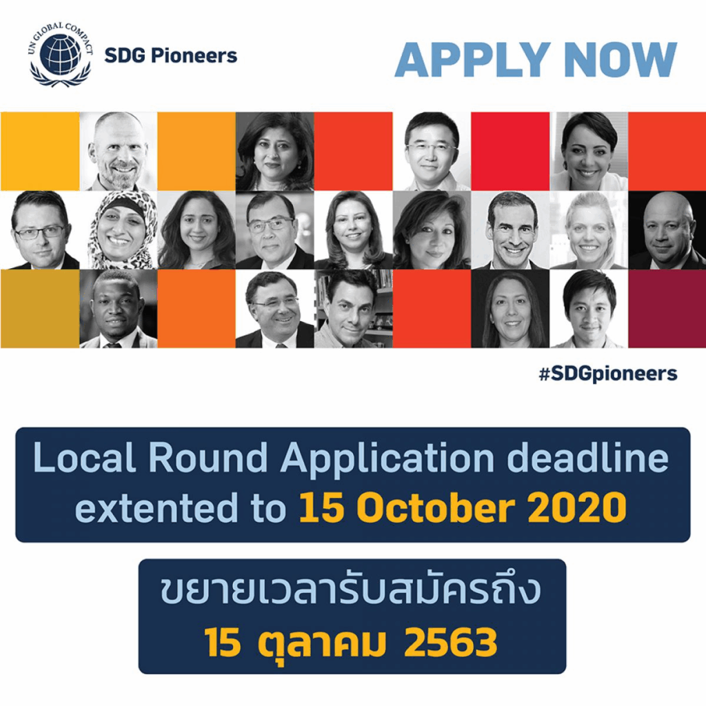 The 2020 Global Compact Network Thailand #SDG Pioneers ขยายเวลารับสมัครตัวแทนจากประเทศไทย เพื่อเข้าร่วมเวทีโลกของผู้นำการเปลี่ยนแปลง เพื่อการพัฒนาที่ยั่งยืน