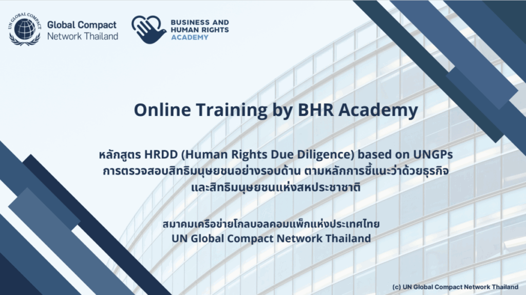 กรุงเทพฯ – การไฟฟ้าฝ่ายผลิตแห่งประเทศไทย (กฟผ.) ร่วมกับ สมาคมเครือข่ายโกลบอลคอมแพ็กแห่งประเทศไทย (GCNT) จัดฝึกอบรมหลักสูตร HRDD (Human Rights Due Diligence) based on UNGPs การตรวจสอบสิทธิมนุษยชนอย่างรอบด้าน ตามหลักการชี้แนะว่าด้วยธุรกิจและสิทธิมนุษยชนแห่งสหประชาชาติ ให้แก่เจ้าหน้าที่และคณะทำงานด้านสิทธิมนุษยชนขององค์กร ผ่าน ระบบ Zoom Meeting เมื่อวันที่ 25 สิงหาคม 2568 เวลา 09.00–12.00 น.