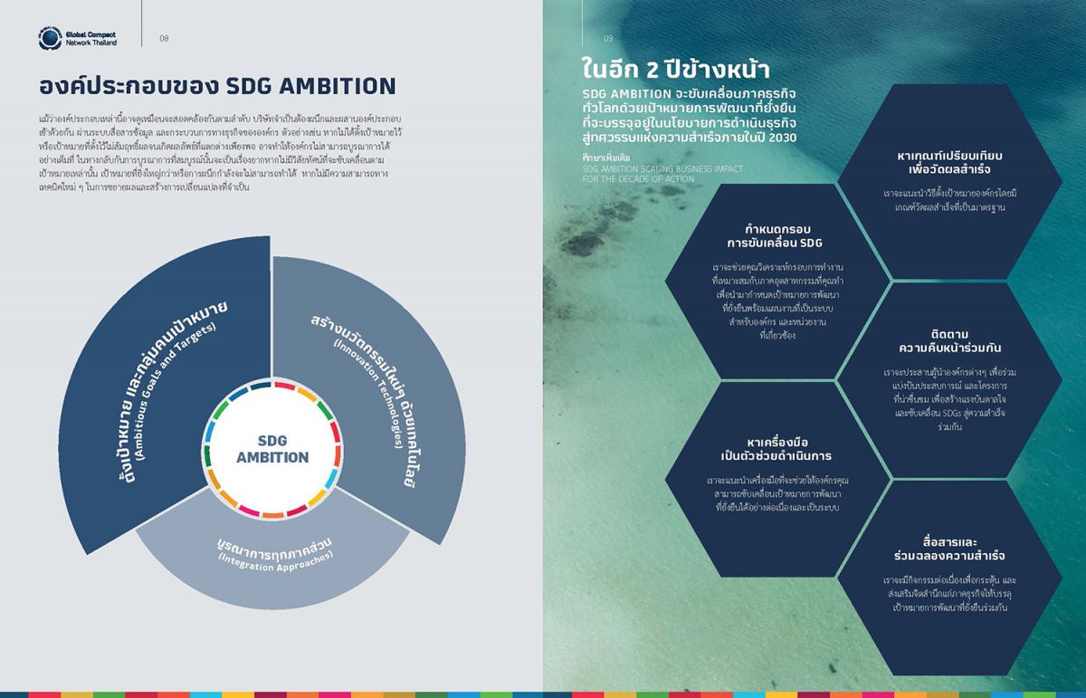 SDG Ambition คือโปรแกรมสนับสนุนบริษัทต่างๆ ในการตั้งเป้าหมายและกำหนดทิศทางการดำเนินธุรกิจหลักให้สอดคล้องกับ SDGs เป้าหมายหลักทั้ง 17 ประการ ที่มีความท้าทายเพื่อร่วมกันบรรลุเป้าหมายการพัฒนาอย่างยั่งยืน ภายในปี 2573 ศึกษารายละเอียดโปรแกรมได้ ที่นี่