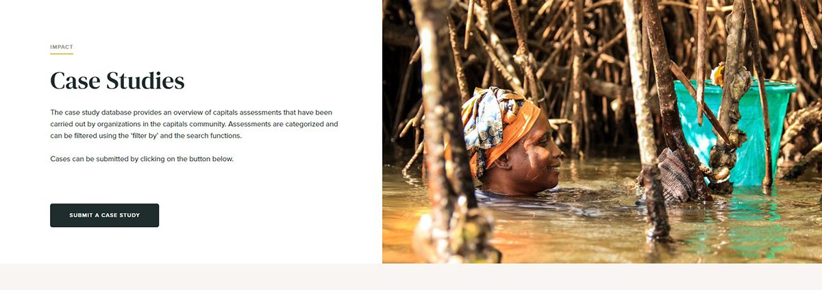 The case study database provides an overview of capitals assessments that have been carried out by organizations in the capitals community. Assessments are categorized and can be filtered using the ‘filter by’ and the search functions.