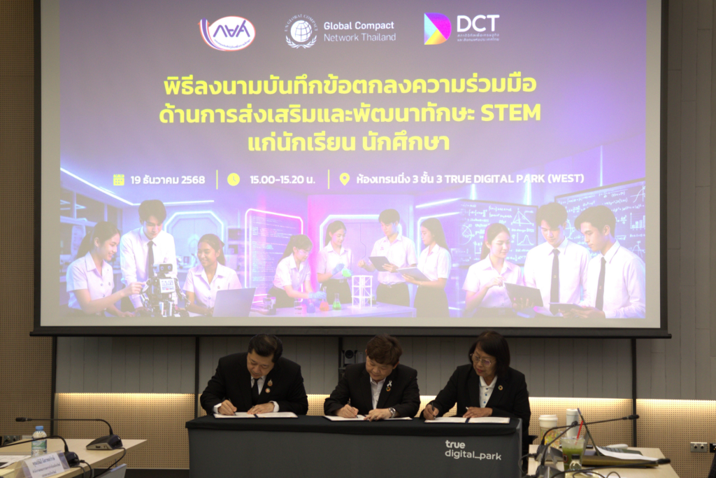 กองทุนเงินให้กู้ยืมเพื่อการศึกษา (กยศ.), สมาคมเครือข่ายโกลบอลคอมแพ็กแห่งประเทศไทย (GCNT) และสภาดิจิทัลเพื่อเศรษฐกิจและสังคมแห่งประเทศไทย (DCT) ประกาศลงนามบันทึกข้อตกลงความร่วมมือ (MOU) ครั้งสำคัญ เพื่อส่งเสริมและพัฒนาทักษะ STEM และทักษะดิจิทัลแก่นักเรียนและนักศึกษาไทย พร้อมสร้างเส้นทางสู่การประกอบอาชีพในอนาคต และสนับสนุน เป้าหมายการพัฒนาที่ยั่งยืนของสหประชาชาติ (SDGs)