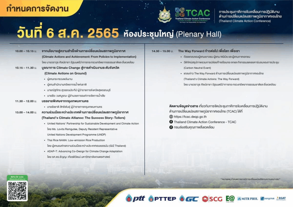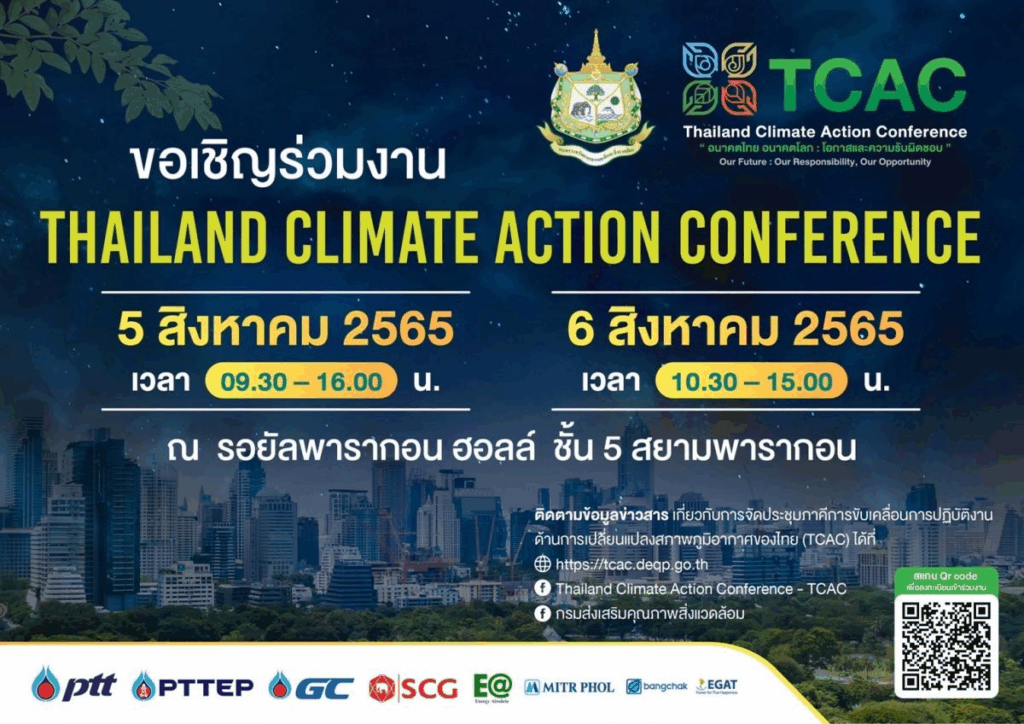 ขอเชิญร่วมงาน Thailand Climate Action Conference : TCAC “การจัด ประชุมภาคีการขับเคลื่อนการปฏิบัติงานด้านการเปลี่ยนแปลงสภาพภูมิอากาศของไทย”