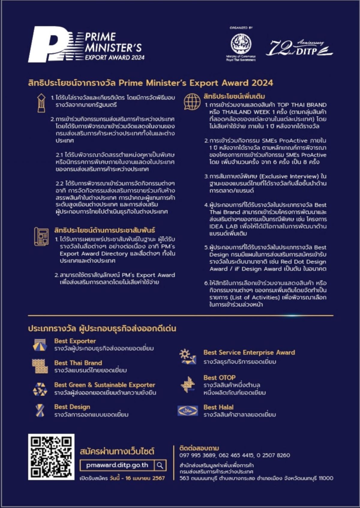เชิญชวนผู้ประกอบการสมัครเข้ารับรางวัลผู้ประกอบธุรกิจส่งออกดีเด่น ปี 2567 (Prime Minister’s Export Award 2024)