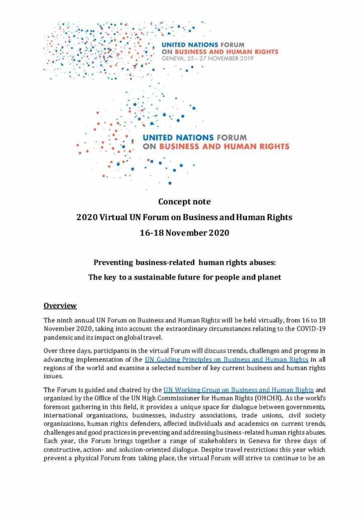 Download here: https://www.ohchr.org/Documents/Issues/Business/2020ConceptNote.pdfRegistration : https://indico.un.org/event/20123/
