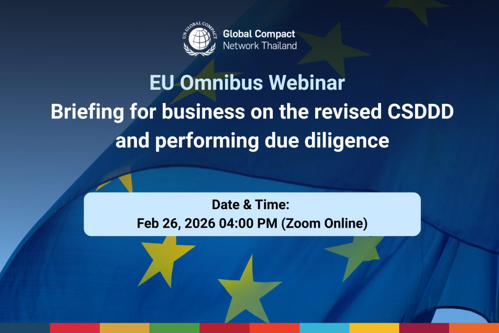 āđ€āļĄāļ·āđˆāļ­āļāļ•āļīāļāļēāđ‚āļĨāļāđ€āļ›āļĨāļĩāđˆāļĒāļ™ āļ˜āļļāļĢāļāļīāļˆāļ•āđ‰āļ­āļ‡āļ›āļĢāļąāļšāđƒāļŦāđ‰āļ—āļąāļ™! āļ‚āļ­āđ€āļŠāļīāļāļĢāđˆāļ§āļĄāļ‡āļēāļ™āļŠāļąāļĄāļĄāļ™āļēāļ­āļ­āļ™āđ„āļĨāļ™āđŒ “EU Omnibus Webinar – Briefing for business on the revised CSDDD and performing due diligence” āļˆāļąāļ”āđ‚āļ”āļĒ Shift āļĻāļđāļ™āļĒāđŒāđ€āļŠāļĩāđˆāļĒāļ§āļŠāļēāļāļĢāļ°āļ”āļąāļšāđ‚āļĨāļāļ”āđ‰āļēāļ™āļŠāļīāļ—āļ˜āļīāļĄāļ™āļļāļĐāļĒāļŠāļ™ āđ€āļžāļ·āđˆāļ­āļ—āļģāļ„āļ§āļēāļĄāđ€āļ‚āđ‰āļēāđƒāļˆ “āļāļēāļĢāļ›āļĢāļąāļšāļ›āļĢāļļāļ‡āļ‚āđ‰āļ­āļāļģāļŦāļ™āļ” EU Omnibus (OSP)” āđāļĨāļ°āļ„āļ§āļēāļĄāļŦāļĄāļēāļĒāļ—āļĩāđˆāđāļ—āđ‰āļˆāļĢāļīāļ‡āļ‚āļ­āļ‡āļāļēāļĢāļ›āļĢāļąāļšāļ›āļĢāļļāļ‡ CSDDD āļ•āđˆāļ­āļāļēāļĢāļ”āļģāđ€āļ™āļīāļ™āļ‡āļēāļ™āļ‚āļ­āļ‡āļ āļēāļ„āļ˜āļļāļĢāļāļīāļˆâ€‹