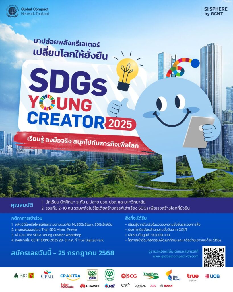 | 4. ลงสนามจริงเพื่อทำหน้าที่ SDGs Young Creator ใน GCNT EXPO 2025 | 29-31 กรกฏาคม 2568 |