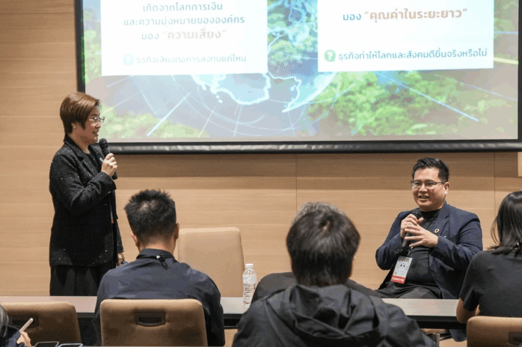ดร.ธันยพร กริชติทายาวุธ ผู้อำนวยการสมาคมเครือข่ายโกลบอลคอมแพ็กแห่งประเทศไทย (GCNT) ได้ร่วมเวทีเสวนาในหัวข้อ “Greenwashing หรือ ความยั่งยืนของจริง?” ในงาน Adman Awards & Symposium 2025 ณ Samyan Mitrtown Hall โดยได้ร่วมพูดคุยกับ ดร. ปอยหลวง โคนทรงแสน Chief Executive Officer, The Platform Co. Ltd. เพื่อหาคำตอบและแนวทางปฏิบัติที่ชัดเจนสำหรับภาคธุรกิจไม่ให้เข้าข่ายการฟอกเขียว