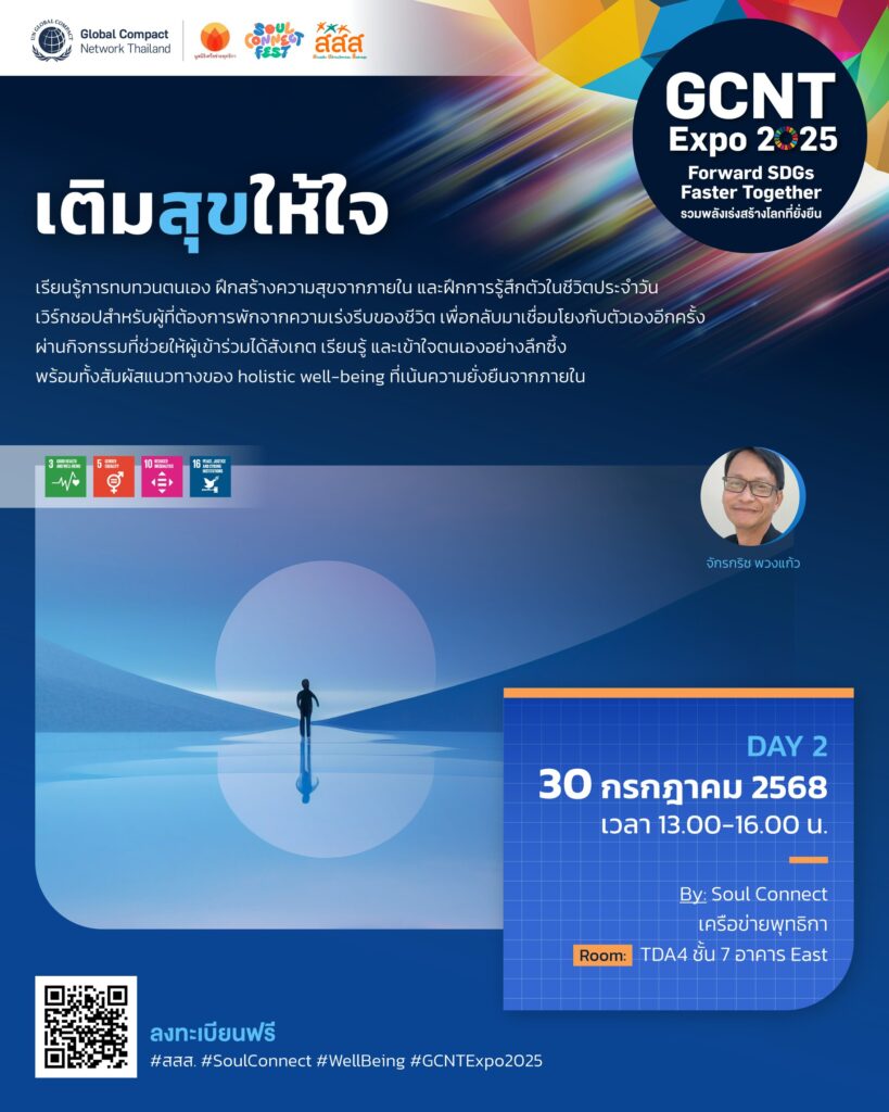 เวิร์กชอปสำหรับผู้ที่ต้องการพักจากความเร่งรีบของชีวิต เพื่อกลับมาเชื่อมโยงกับตัวเองอีกครั้ง ผ่านกิจกรรมที่ช่วยให้ผู้เข้าร่วมได้สังเกต เรียนรู้ และเข้าใจตนเองอย่างลึกซึ้ง พร้อมทั้งสัมผัสแนวทางของ holistic well-being ที่เน้นความยั่งยืนจากภายใน