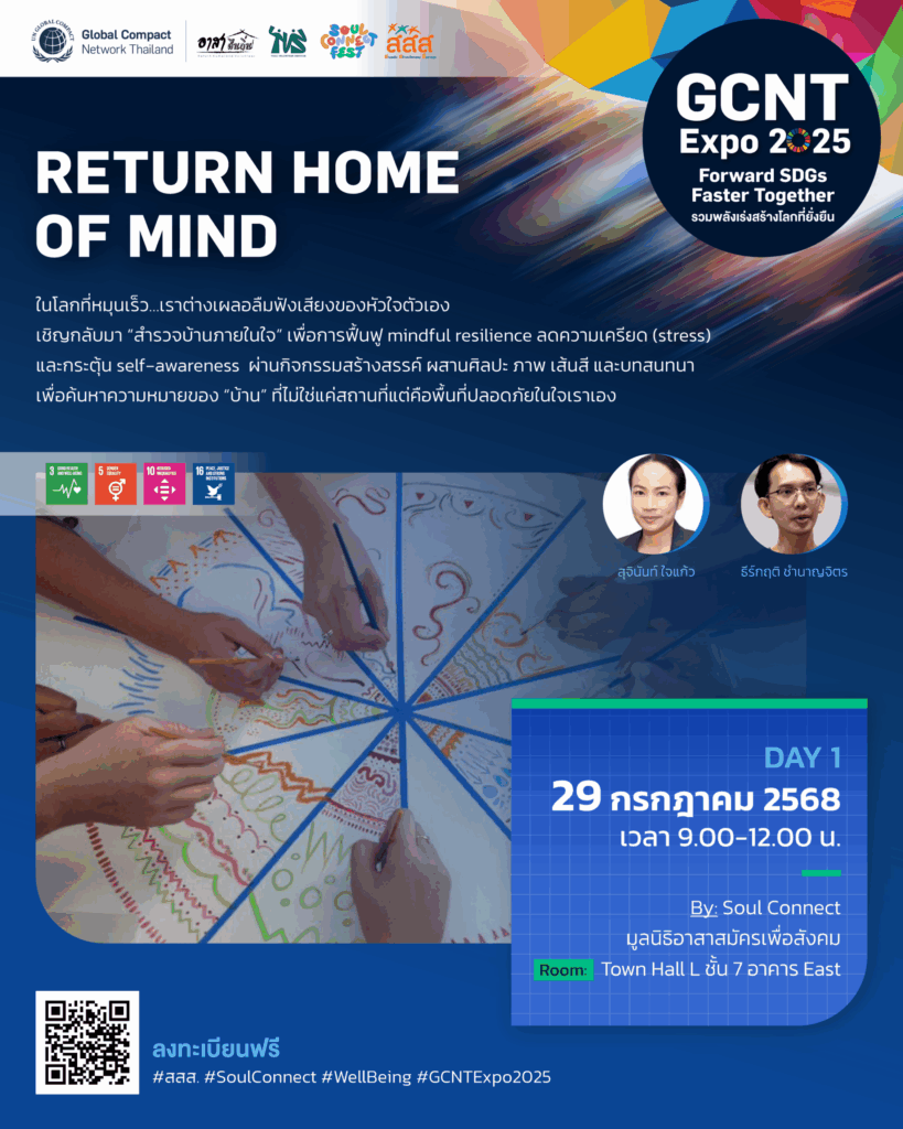 เพื่อการฟื้นฟู mindful resilience ลดความเครียด (stress), และกระตุ้น self‑awareness ผ่านกิจกรรมสร้างสรรค์ ผสานศิลปะ ภาพ เส้นสี และบทสนทนาเพื่อค้นหาความหมายของ “บ้าน” ที่ไม่ใช่แค่สถานที่ แต่คือพื้นที่ปลอดภัยในใจเราเอง