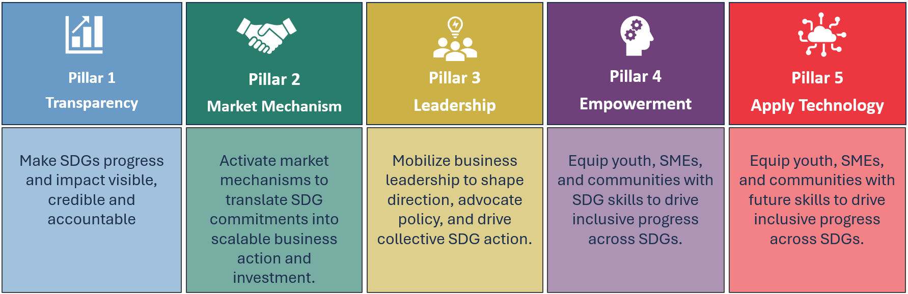 Development Goals) โดยมุ่งเน้นการสร้างภาคีความร่วมมือและการพัฒนานวัตกรรม - ดำเนินกิจกรรมทางธุรกิจด้วยความรับผิดชอบ ทั้งด้านการวางยุทธศาสตร์ และการปฏิบัติการที่สอดคล้องกับหลักสากล 10 ประการ ของ UN Global Compact