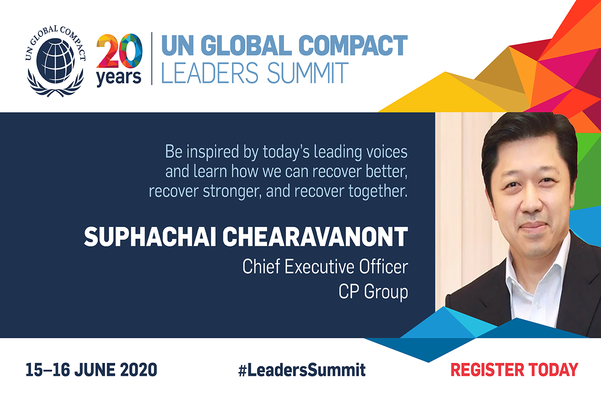 • คุณศุภชัย เจียรวนนท์ ในฐานะนายกสมาคมเครือข่ายโกลบอลคอมแพ็กแห่งประเทศไทย จะร่วมแสดงวิสัยทัศน์บนเวทีระดับโลก ในหัวข้อ “Reflection on Change and Roadmaps to Recovery” ในวันที่ 15 มิถุนายน เวลา 20.15 น. (ตามเวลาประเทศไทย)