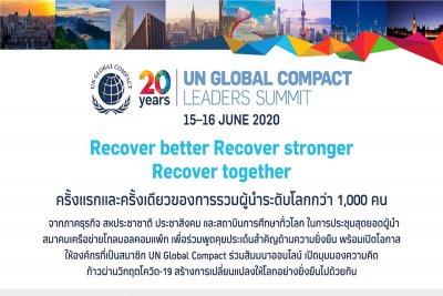 UN Global Compact หรือความร่วมมือของภาคเอกชนแห่งสหประชาชาติมุ่งสู่การพัฒนาอย่างยั่งยืน จะจัดงาน “UN Global Compact Virtual Leaders Summit 2020” งานสัมมนาด้านความยั่งยืนระดับโลกในวาระครบรอบ 20 ปี ผ่านแพลตฟอร์มออนไลน์ทั่วโลกเป็นครั้งแรก ในวันที่ 15-16 มิถุนายน 2563 พร้อมให้ผู้ที่สนใจลงทะเบียนเข้าร่วมออนไลน์ได้ทุกฟอรั่มตลอด 24 ชม.
