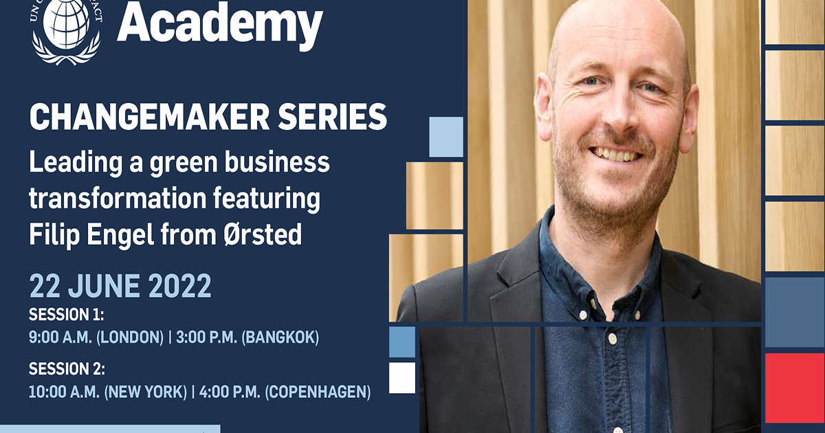 In ten years, Ørsted, a multinational energy company, transformed their business model from one based on fossil fuels to one based on renewable energy. In this Changemaker session, Sara Krüger, Executive Director at the Global Compact Local Network Denmark, speaks candidly with Filip Engel, Vice President for Sustainability, Public Affairs, and Branding at Ørsted (https://orsted.com/) about their green transformation and his role in making it happen - what they did, lessons learned and what’s next.