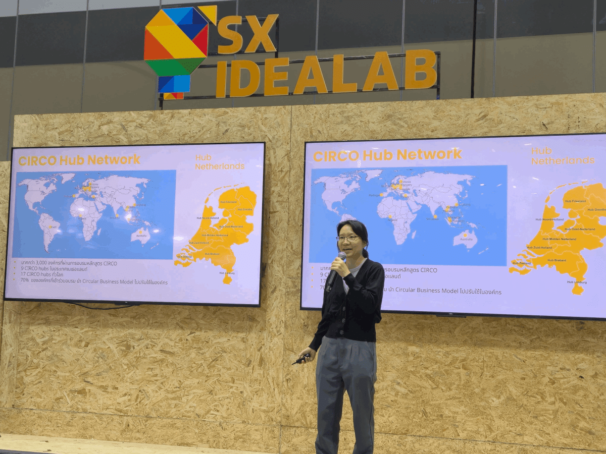 CIRCO hub Thailand ร่วมเป็นส่วนหนึ่งในงาน Sustainability Expo 2025 (SX2025) โดยเป็นผู้จัดกิจกรรมเวิร์คชอบทดลองออกแบบธุรกิจด้วยแนวคิดเศรษฐกิจหมุนเวียน เมื่อวันที่ 1 ตุลาคม 2568 เวลา 13:00-14:00 น. ณ โซน IDEA LAB ศูนย์การประชุมแห่งชาติสิริกิติ์ นำโดย คุณวรพร ปุณยกนก วิทยากรประจำ CIRCO hub Thailand และคุณดลฌา วงษาจันทร์ ผู้จัดการ CIRCO hub Thailand และนักวิจัยด้านสิ่งแวดล้อมและความยั่งยืน