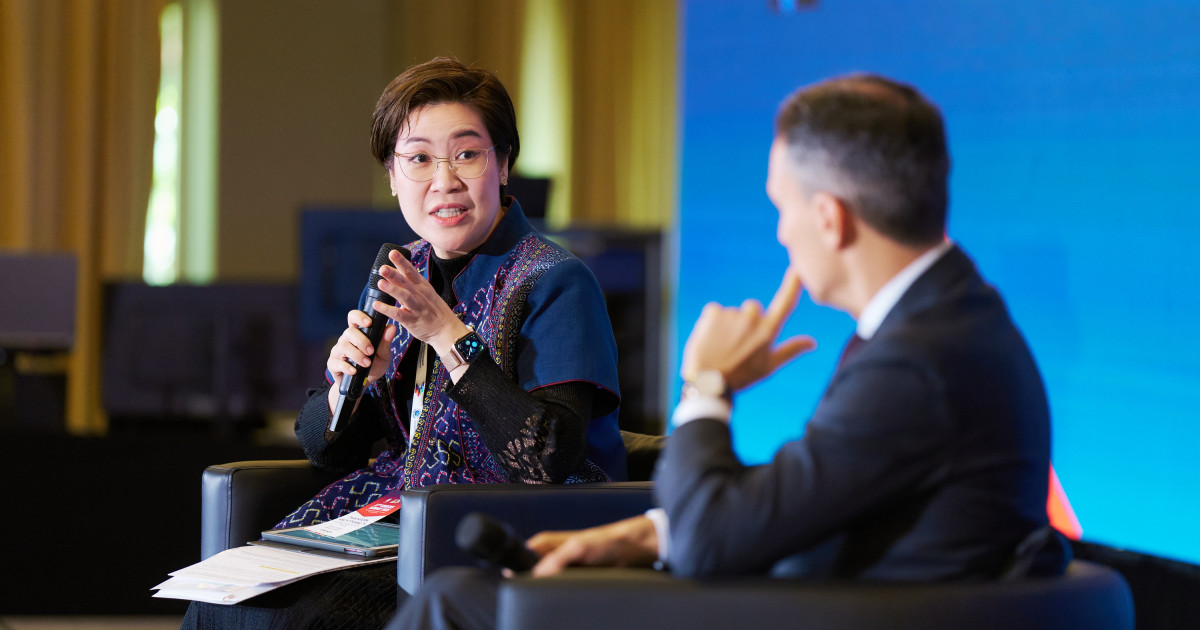 Dr. Thanyaporn Krichtitayawuth, Executive Director of UN Global Compact Network Thailand, joined the fireside discussion at the UN Global Compact Network Singapore Summit 2025 to speak on the “Leading with Purpose: Seizing Opportunities for Sustainability in a Divided World.”