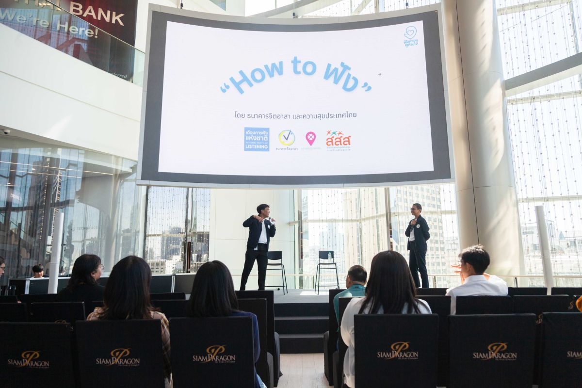 - เสวนา "ดูแลใจในที่ทำงาน" โดย ดีเจพี่อ้อย นภาพร ไตรวิทย์วารีกุล ดร.ธันยพร กริชติทายาวุธ ดร.ศิรภัสสร สกุลวิวรรธน์ และ ดำเนินรายการ โดย คุณธันยมัย อนันตกรณีวัฒน์