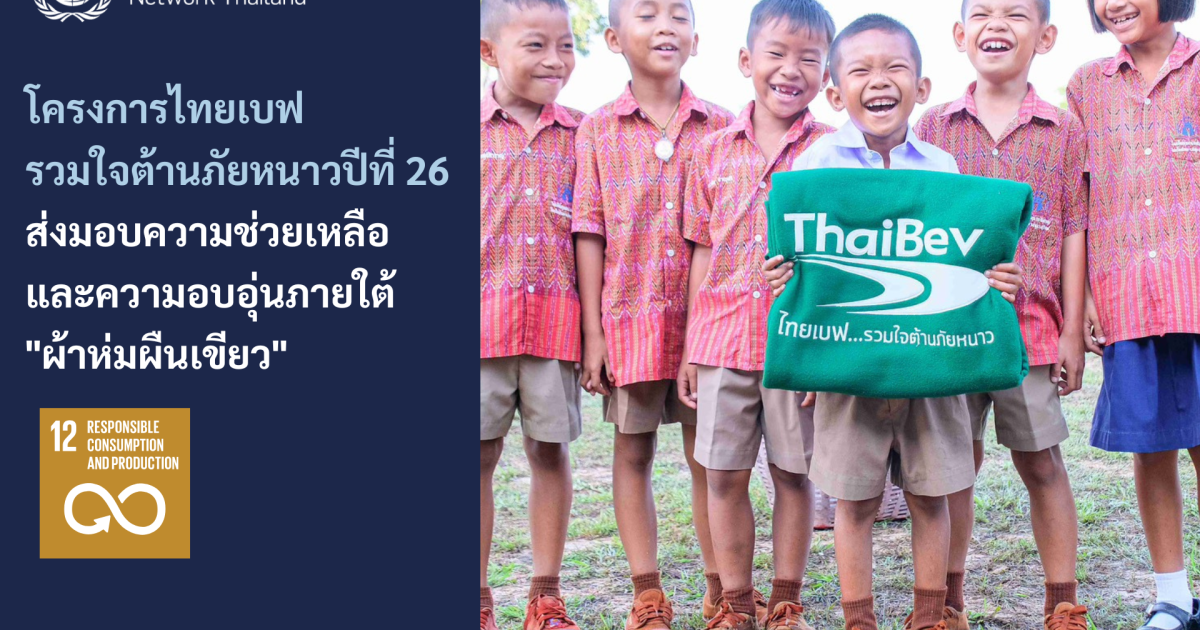 บริษัท ไทยเบฟเวอเรจ จำกัด (มหาชน) สานต่อปณิธานแห่งการ “ให้” ภายใต้โครงการ “ไทยเบฟ…รวมใจต้านภัยหนาว” ที่ได้ดำเนินการมาอย่างต่อเนื่องเป็นปีที่ 26 ตอกย้ำแนวคิด “มากกว่าความอบอุ่น คือสังคมแห่งการให้ที่ยั่งยืน (BEYOND THE GREEN BLANKET… A SUSTAINABLE COMMUNITY OF GIVING)” ด้วยการผสานความร่วมมือกับ กระทรวงมหาดไทย โดยกรมป้องกันและบรรเทาสาธารณภัย ร่วมด้วยเครือข่ายภาครัฐและภาคเอกชน เพื่อส่งมอบความช่วยเหลือและความอบอุ่นไปยังผู้ประสบภัยหนาวที่อยู่ในพื้นที่ห่างไกล พร้อมทั้งขยายความช่วยเหลือในด้านอื่น ๆ ที่จำเป็นต่อการดำรงชีพ ทั้งอาหาร น้ำดื่ม เครื่องอุปโภคบริโภค ตลอดจนการดูแลและส่งเสริมด้านสาธารณสุข การศึกษา กีฬา ศิลปวัฒนธรรม และการพัฒนาชุมชน เพื่อเสริมสร้างอาชีพ รายได้ และความมั่นคงแก่ชุมชนอย่างยั่งยืน