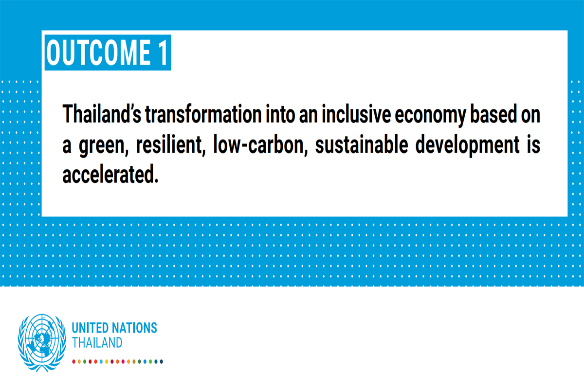 OUTCOME 1 Thailand’s transformation into an inclusive economy based on a green, resilient, low-carbon, sustainable development is accelerated.
