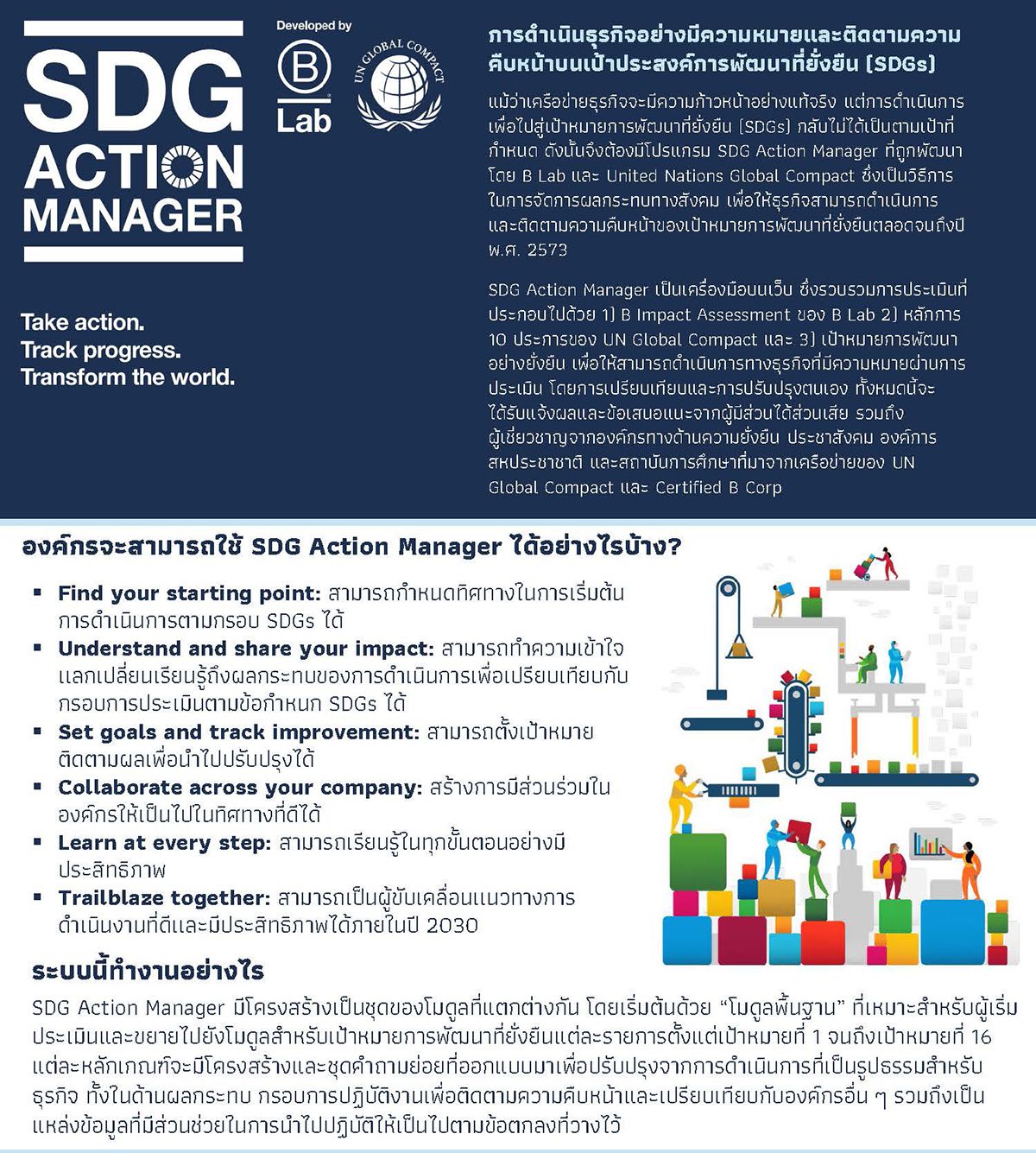 ● Trailblaze together: Join a global movement of companies working to build a better world for people and our planet by 2030.