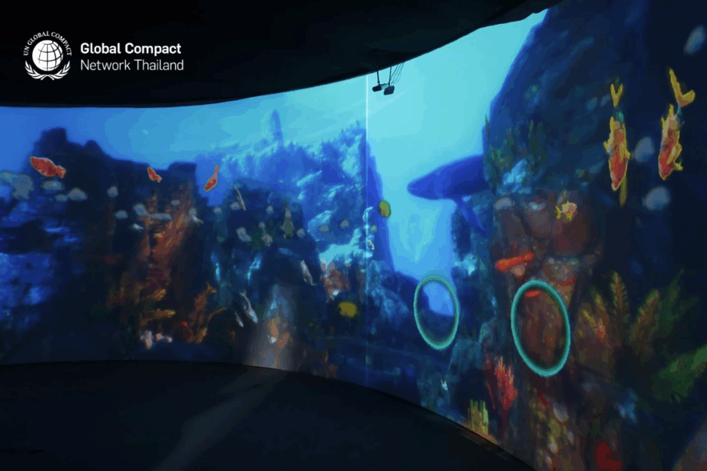 สมาคมเครือข่ายโกลบอลคอมแพ็กแห่งประเทศไทย (UNGCNT) ร่วมกับ Central Pattana เปิดโอกาสให้คนรุ่นใหม่ได้สัมผัสประสบการณ์การเรียนรู้ที่จะเป็นผู้พิทักษ์โลกใต้ทะเล ผ่านกิจกรรมช่วยเหลือสัตว์ทะเลในห้องดิจิทัลอิมเมอร์ซีฟ Save the Sea ACTperience powered by EPSON กิจกรรมนี้จะทำให้รู้ว่าทุกคนสามารถเป็นฮีโร่ได้ง่ายๆ ด้วยมือเรา โดยการให้เก็บขยะที่อยู่ในน้ำทะเลออกไป พร้อมปลูกฝังจิตสำนึกเมื่อเห็นขยะในทะเลก็ต้องช่วยกันเก็บไปทิ้ง เท่านี้ก็เป็นการช่วยลดปริมาณขยะในน้ำทะเลและได้ช่วยอนุรักษ์สัตว์น้ำ ที่สำคัญคือทำหน้าที่ฮีโร่พิทักษ์ความยั่งยืนตามเป้าหมาย SDGs ในข้อ 14 คือ อนุรักษ์และใช้ประโยชน์จากมหาสมุทร ทะเลและทรัพยากรทางทะเลอย่างยั่งยืนเพื่อการพัฒนาที่ยั่งยืน